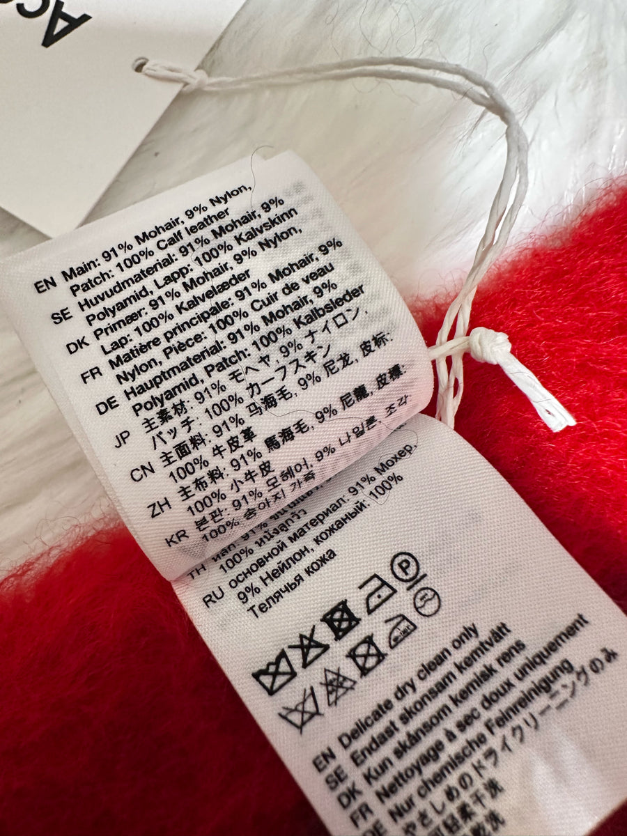 Material: 91% Mohair, 9% Nylon, leather logo patch