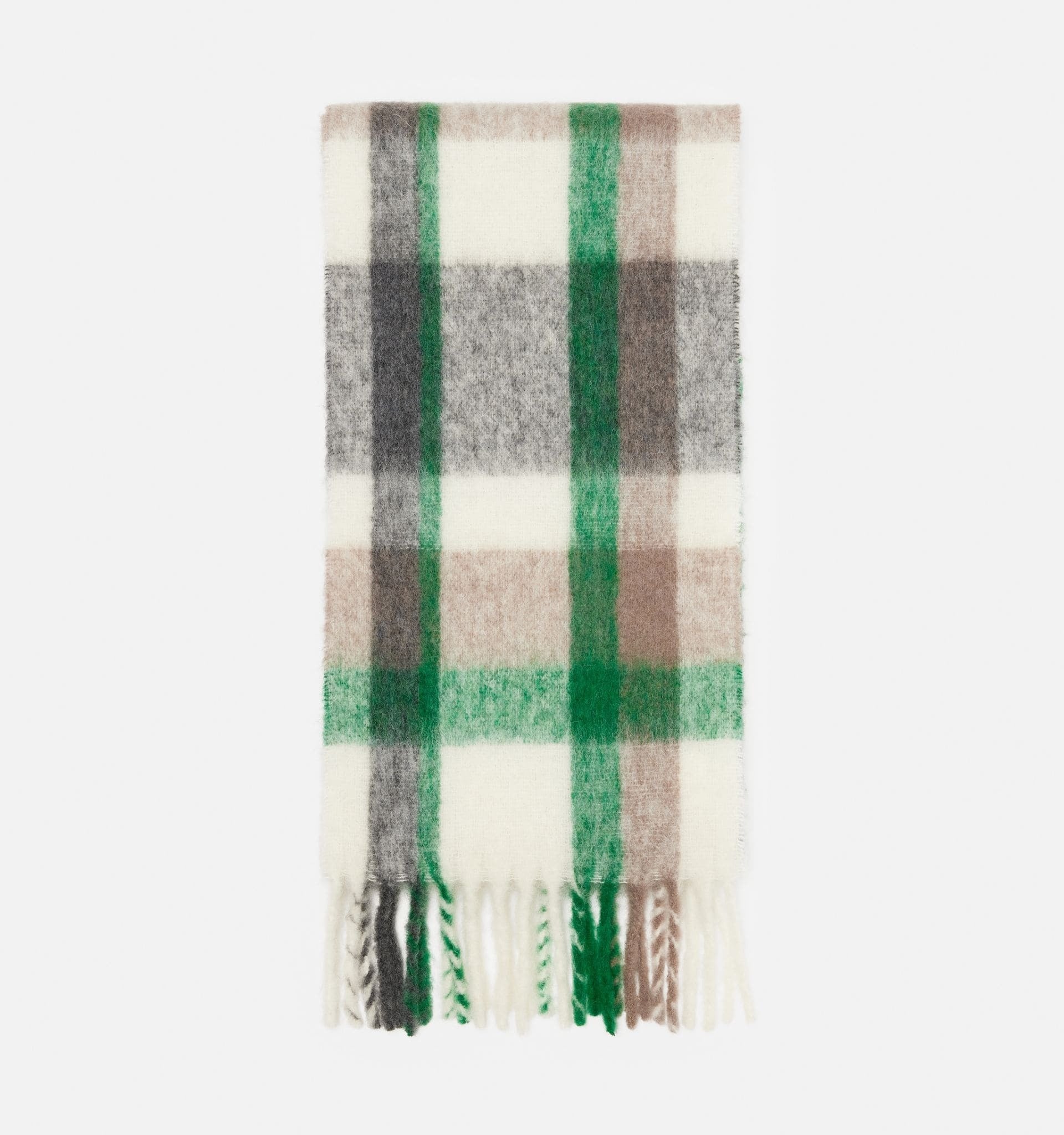 The AMI Paris Oversized Check Wool Scarf is a cozy yet stylish winter essential. Featuring a bold check pattern in neutral and green tones, this scarf is crafted from premium wool to keep you warm while elevating your seasonal outfits.