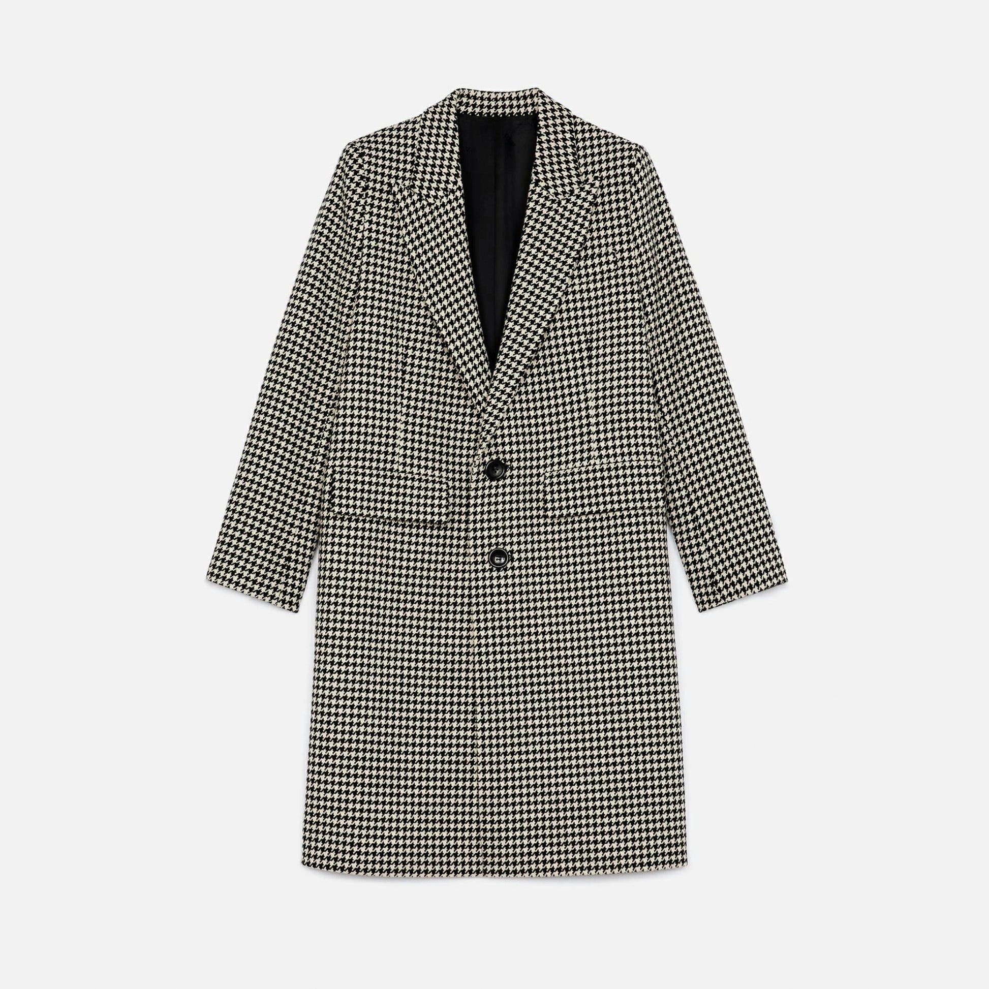- Design Features: Checked pattern, structured silhouette, front button closure, and front pockets