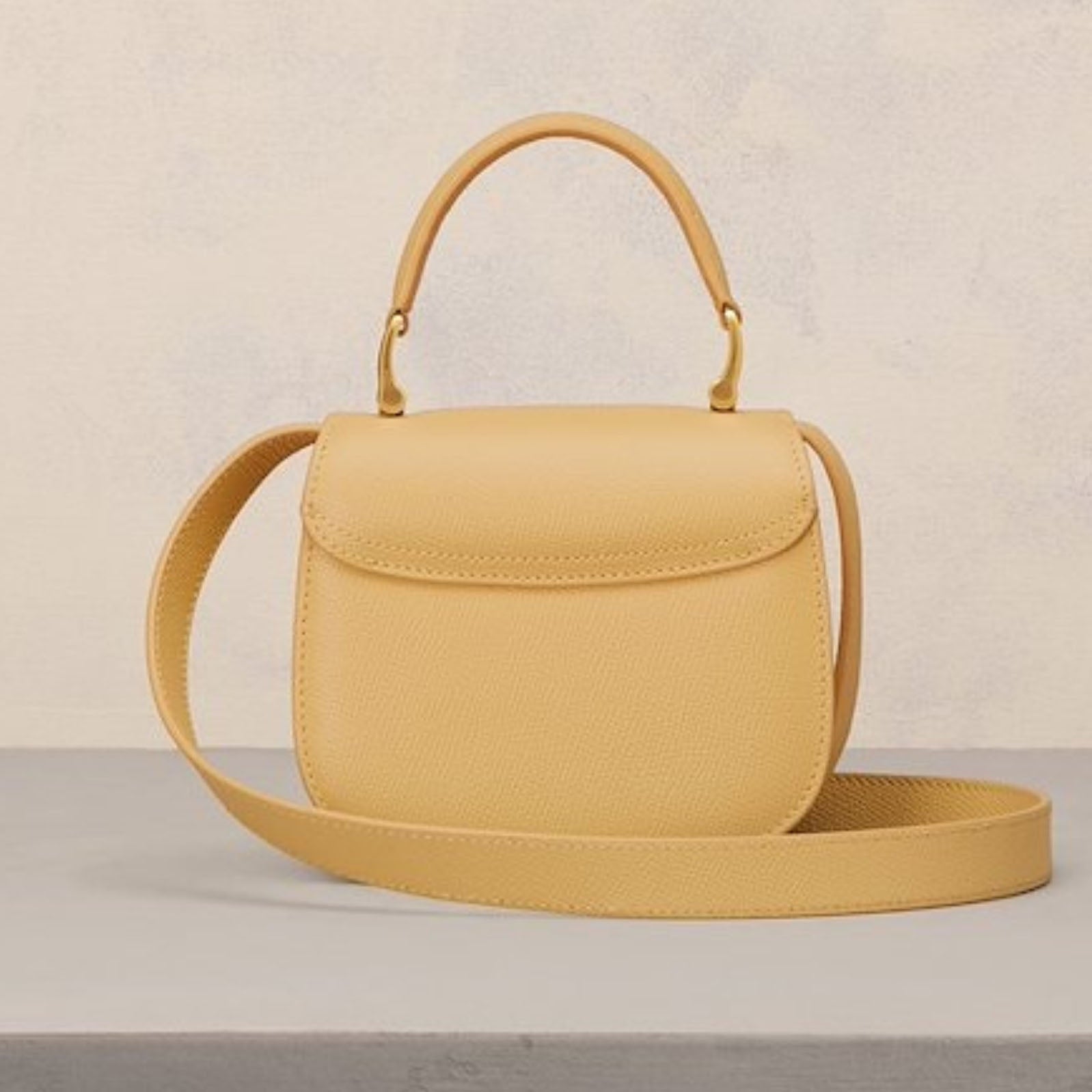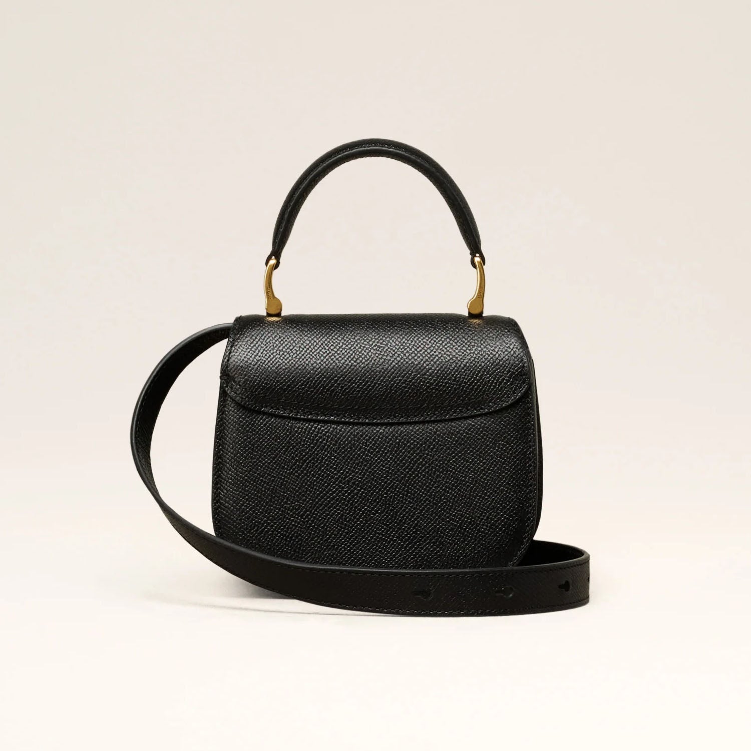 - Type & Color: Mini leather top handle bag with gold logo hardware