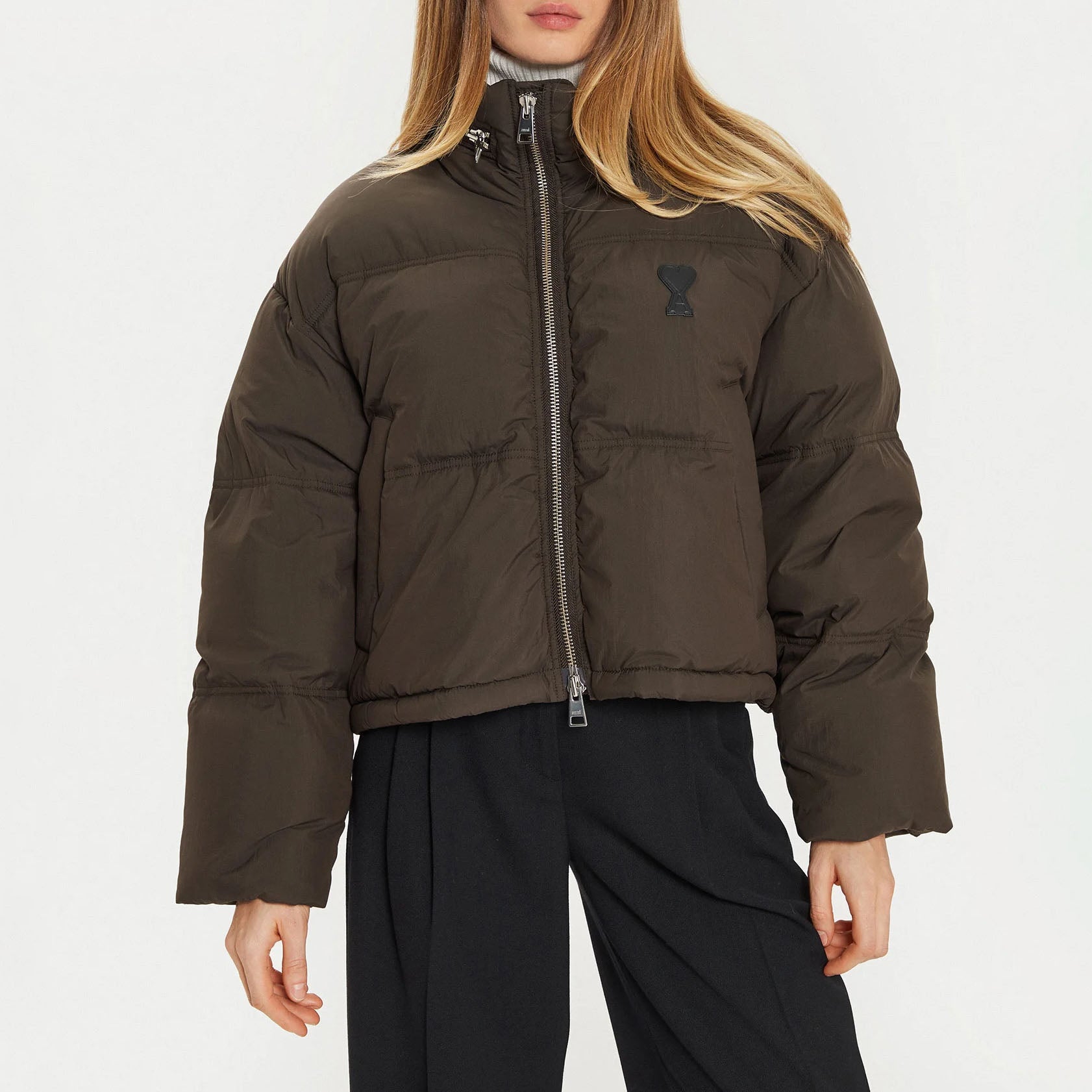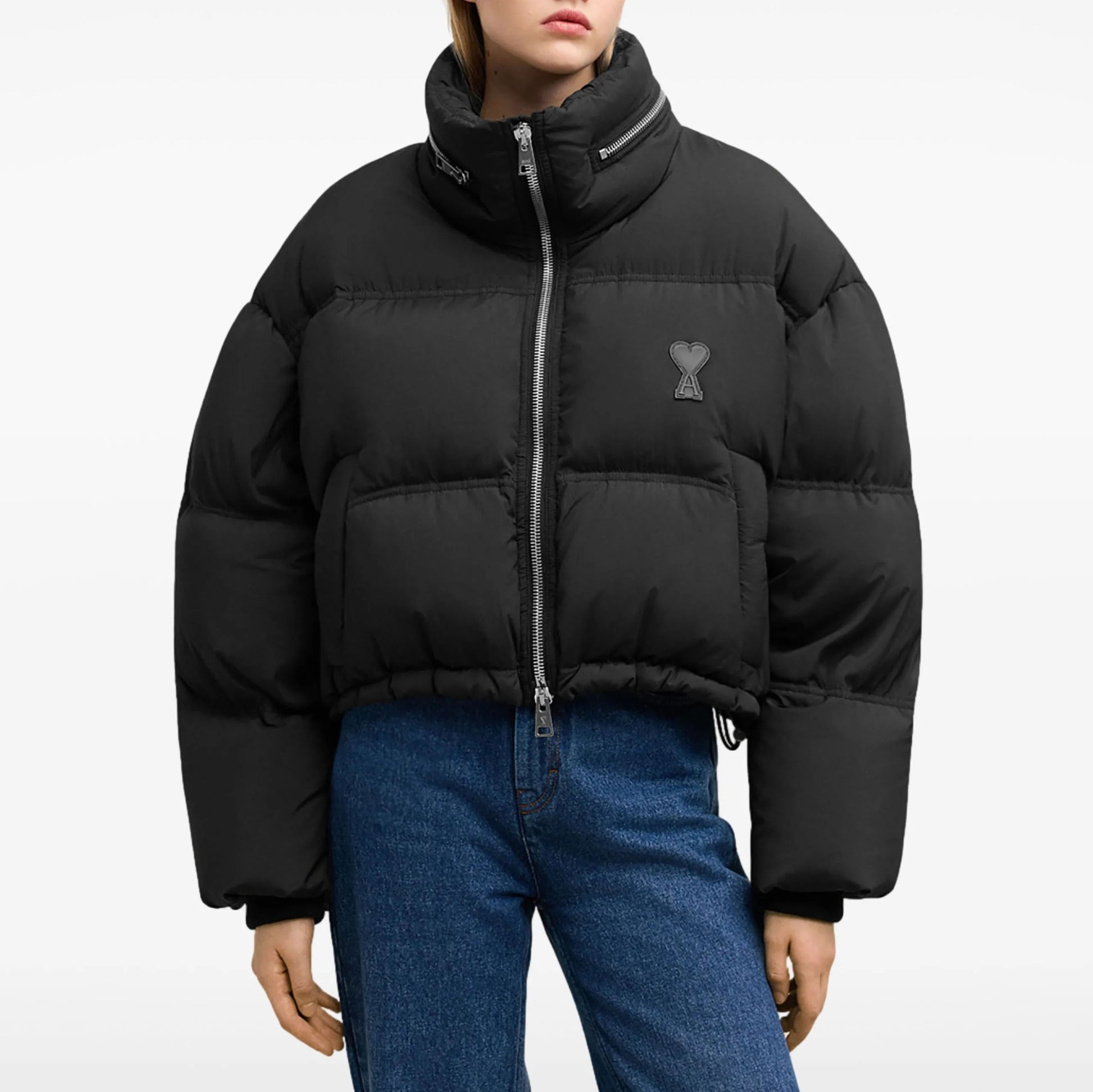 - Classic AMI Paris puffer jacket with embroidered Ami de Cœur heart logo at the chest.