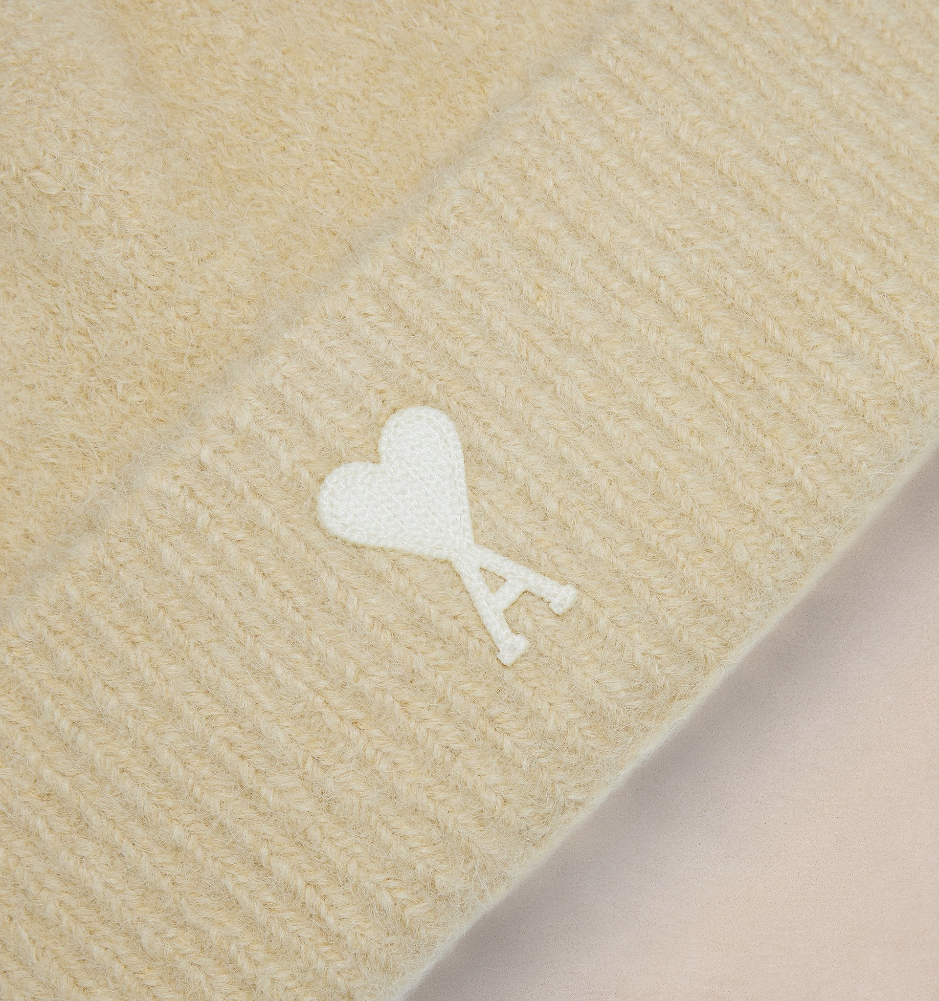 - Ribbed knit wool beanie featuring the signature Ami de Coeur heart logo patch at the front.