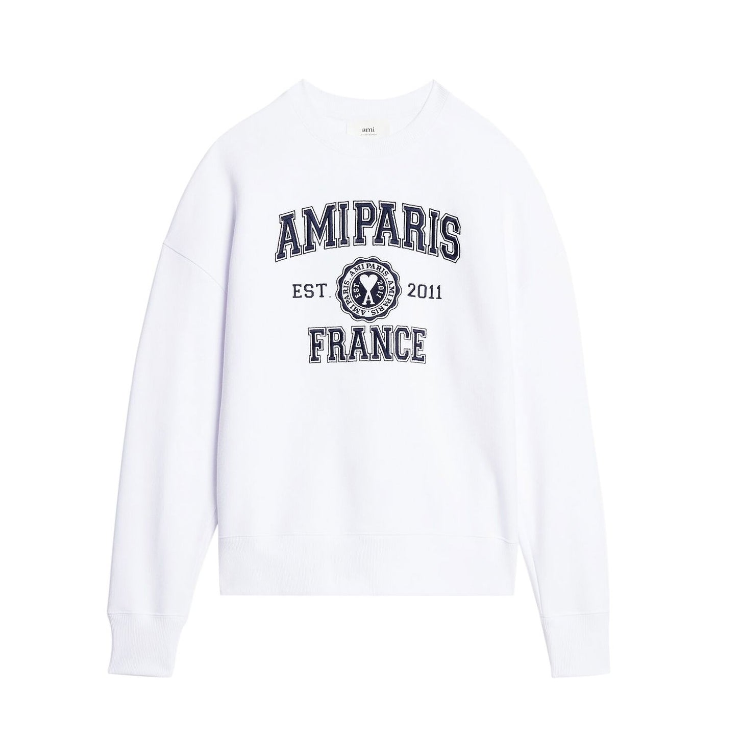 - Bold “AMI PARIS” France logo across the chest for signature branding.