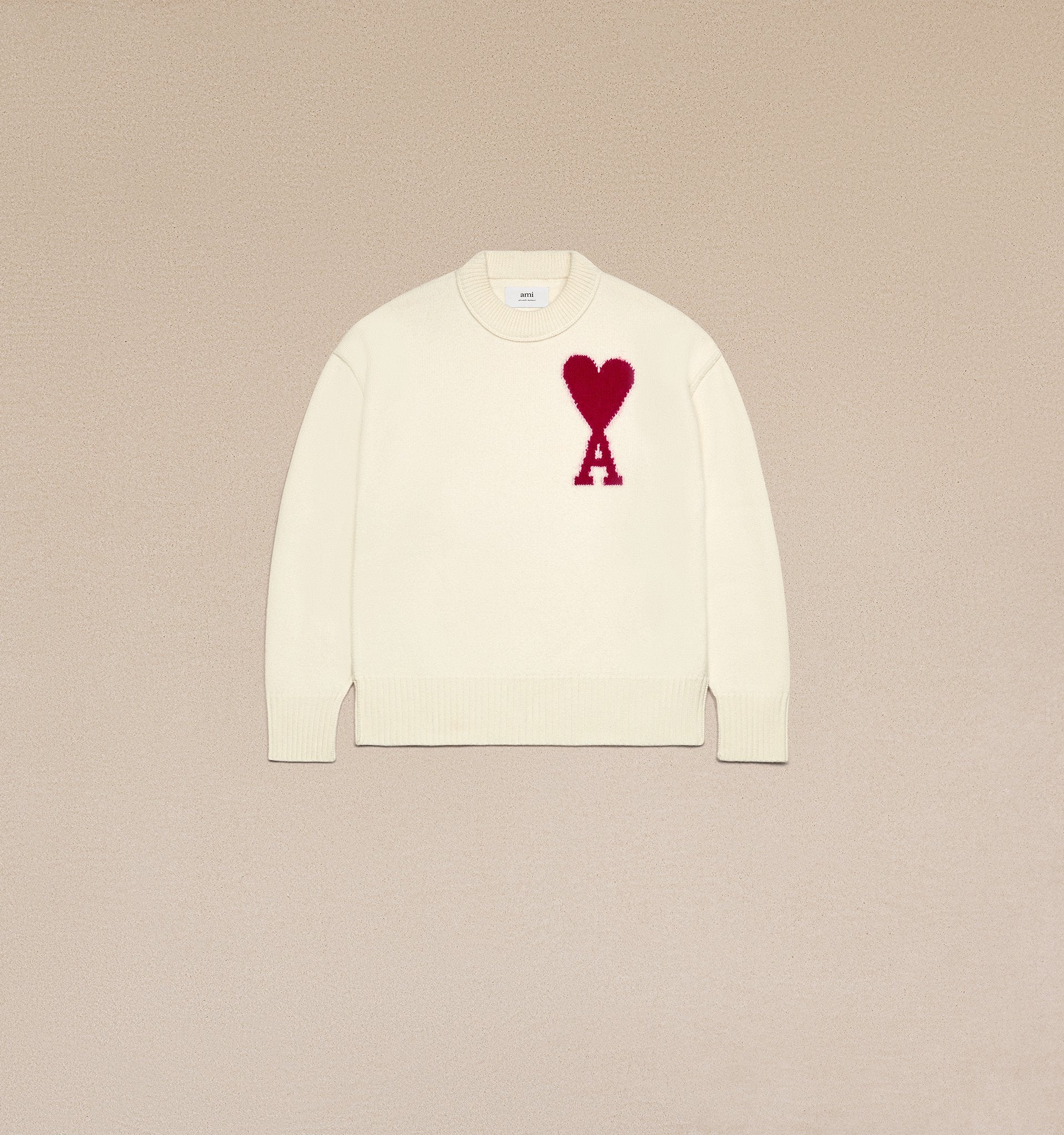 - Design Features: Classic crew neck, ribbed cuffs and hem, bold oversized AMI heart logo with "A" embroidery on chest