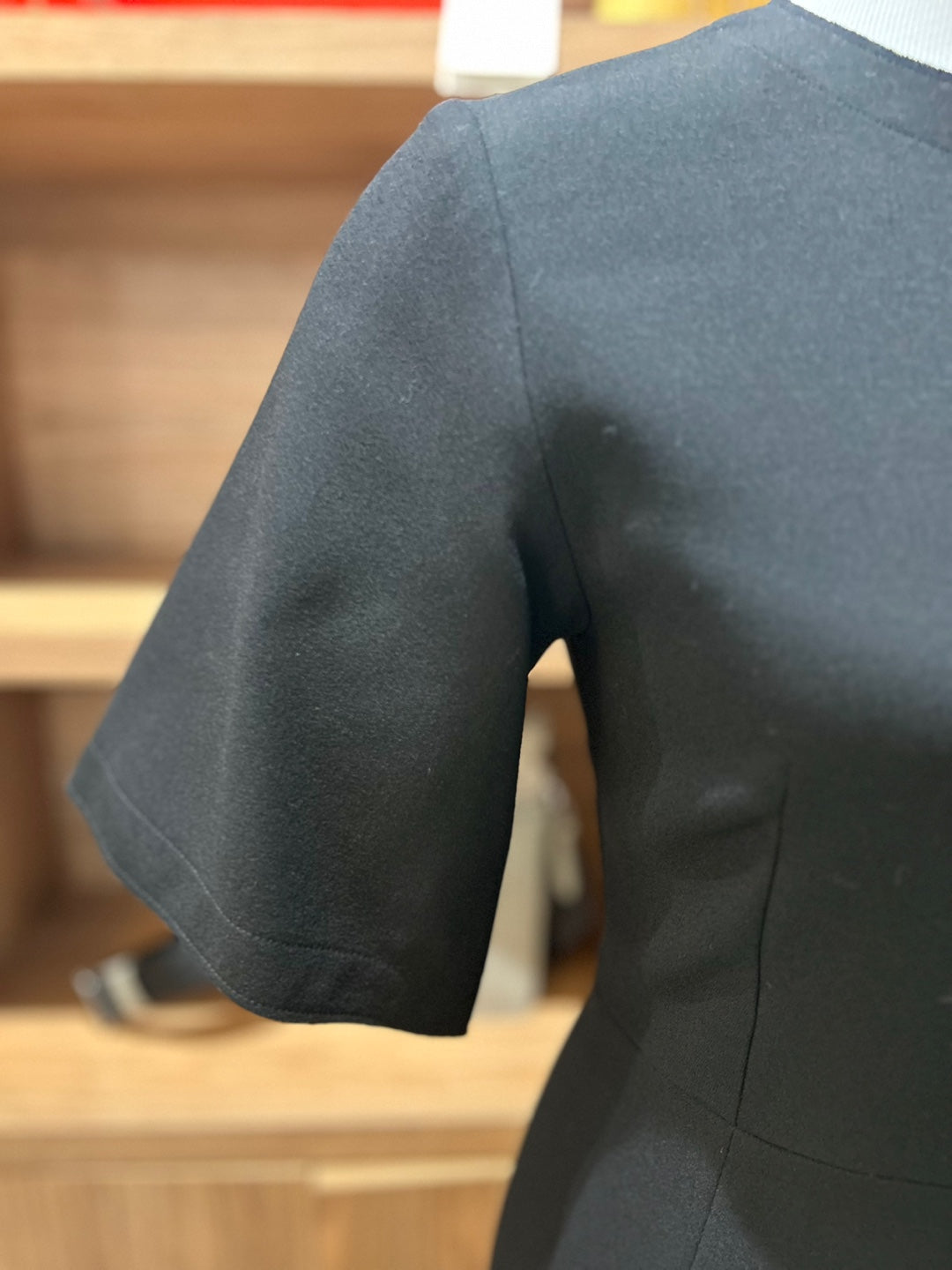 - Type & Color: Black wool flare midi dress