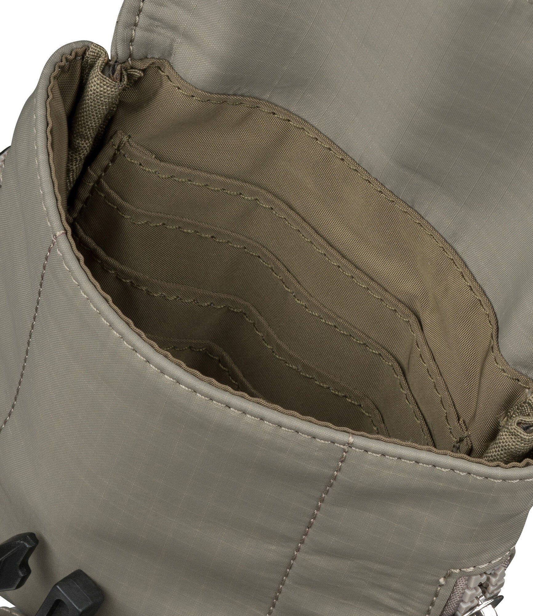 - Type & Color: Compact crossbody pouch in khaki and navy options
