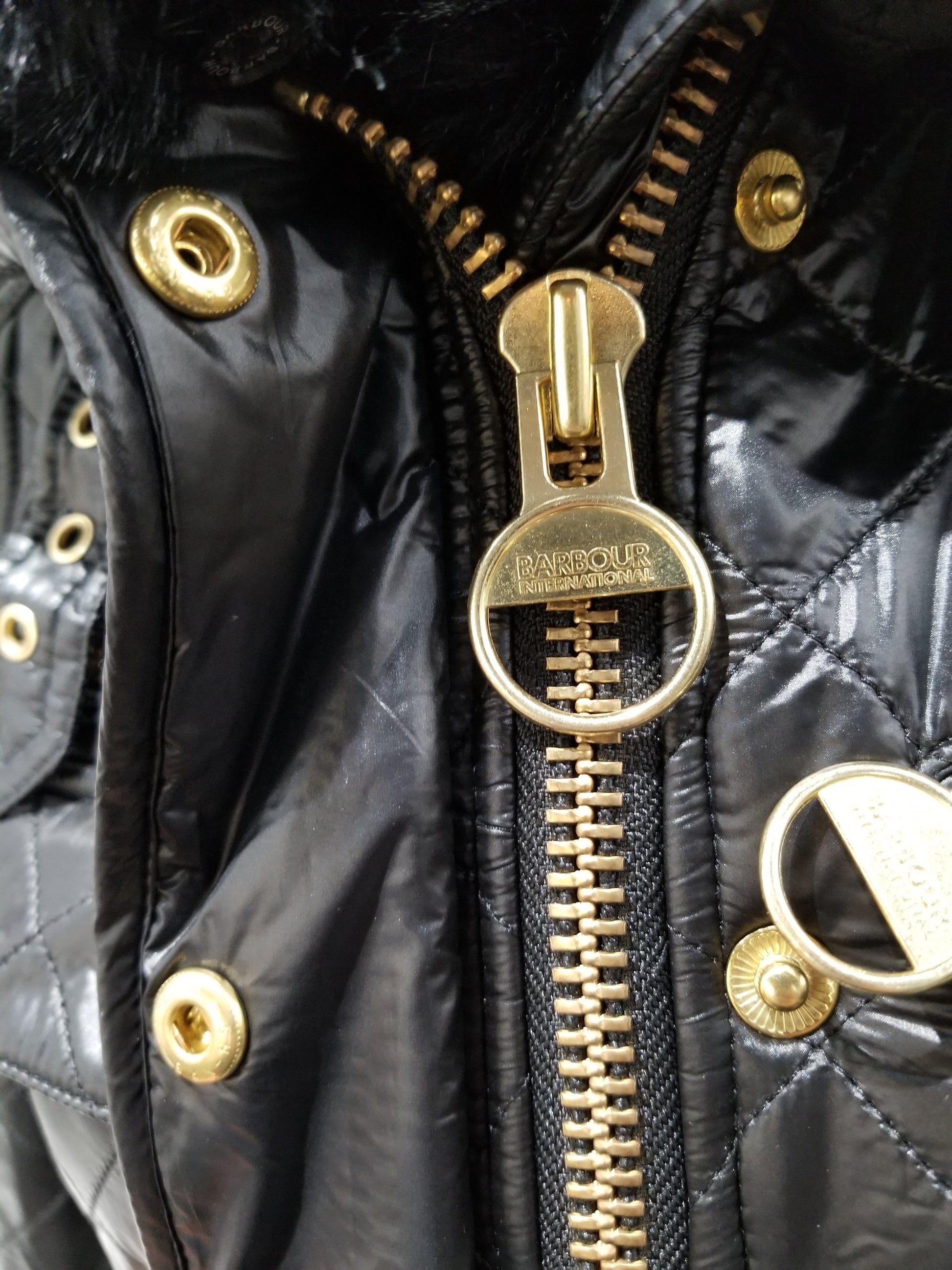 - Type & Color: Quilted jacket in black with gold-tone hardware