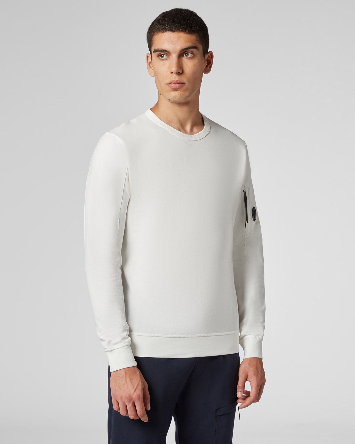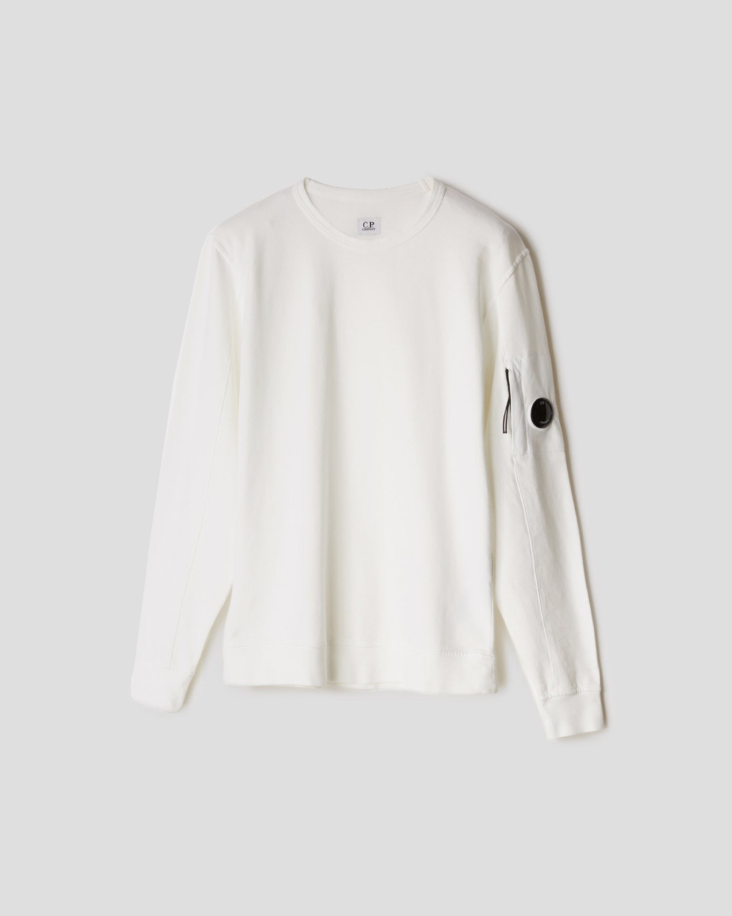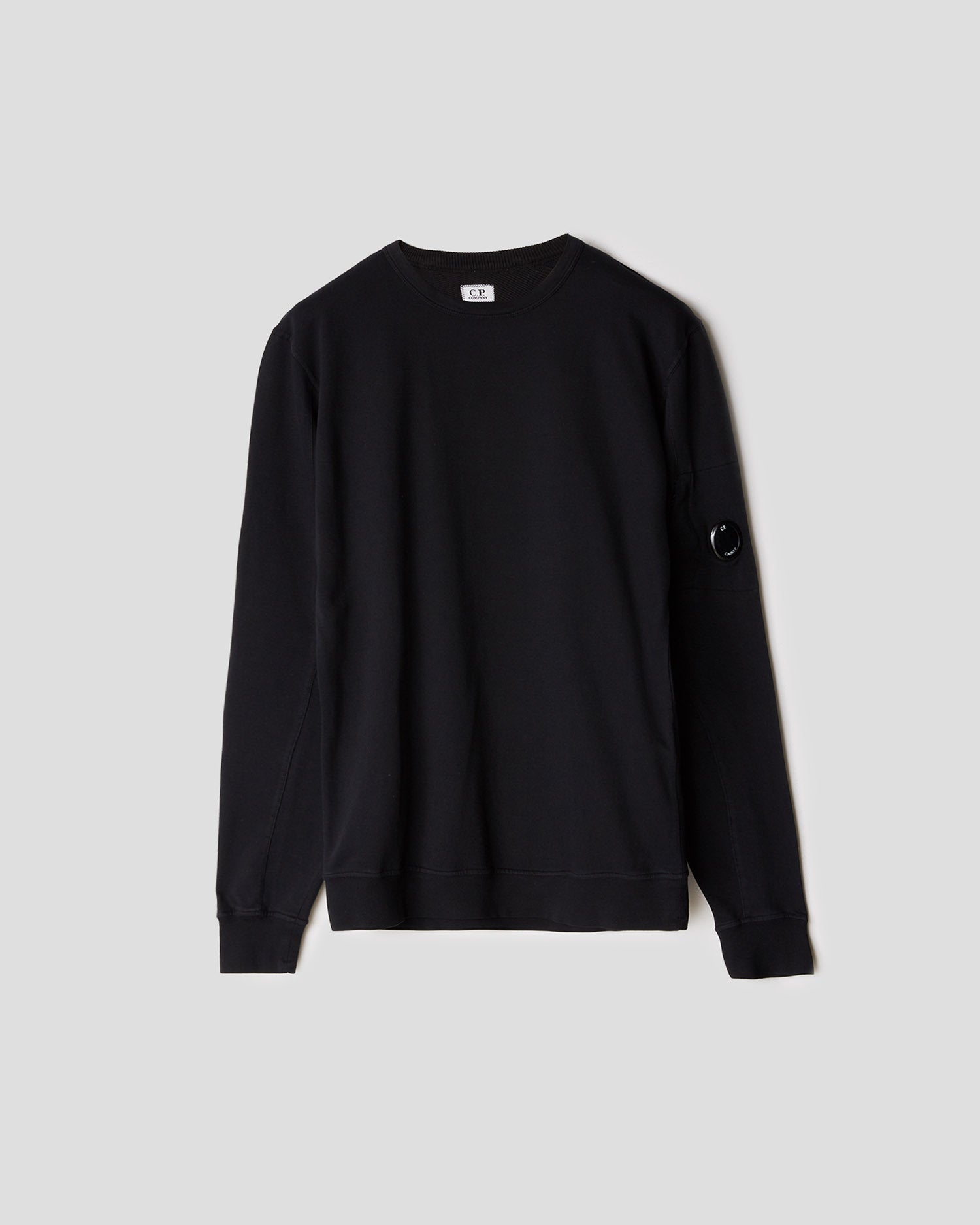 - Iconic crew-neck sweatshirt silhouette by C.P. Company featuring the signature goggle-lens badge on the sleeve.
