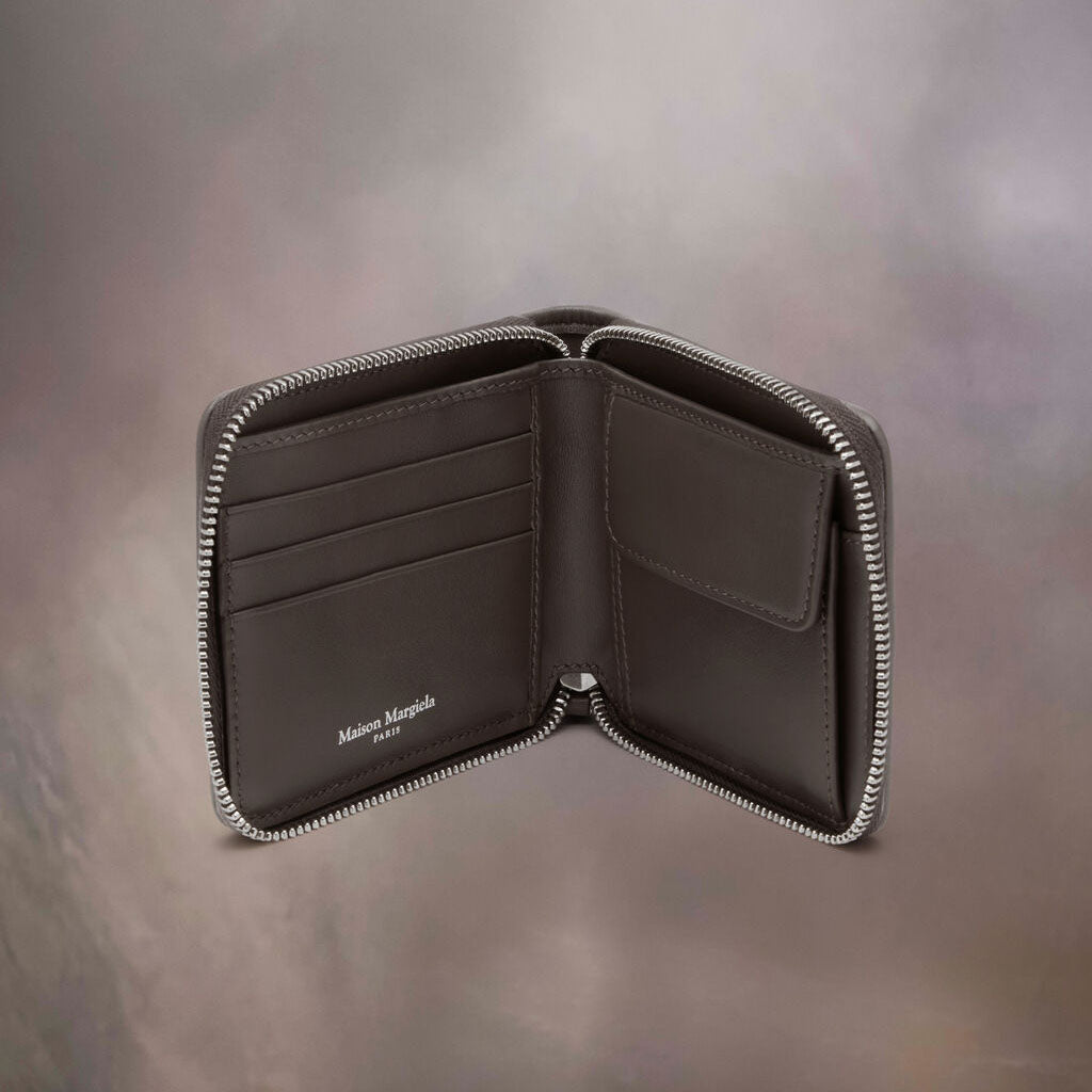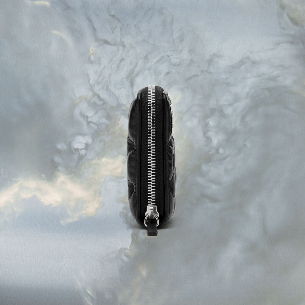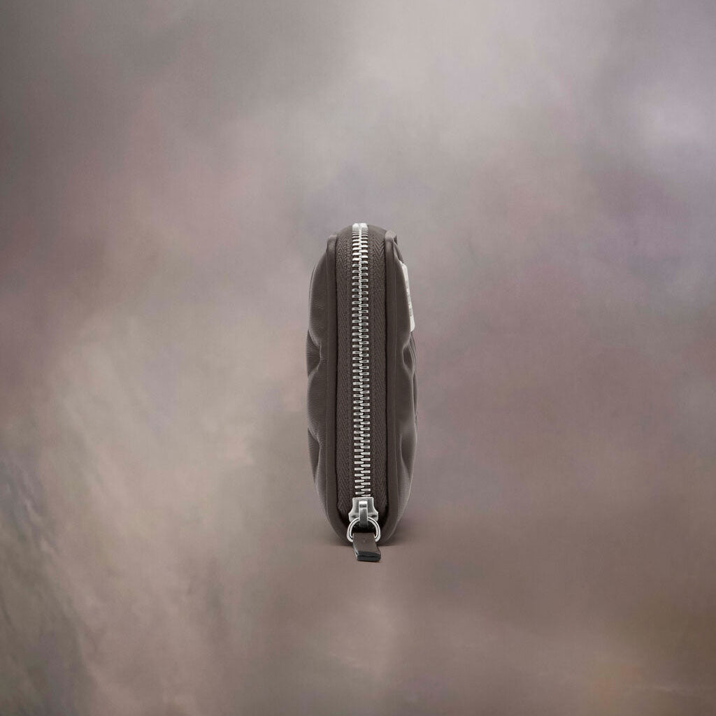 - Unisex zip wallet combining functionality with modern minimalist aesthetics.