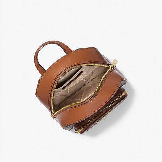 - Type & Color: Extra-small backpack in brown with MK monogram print and luggage leather trim