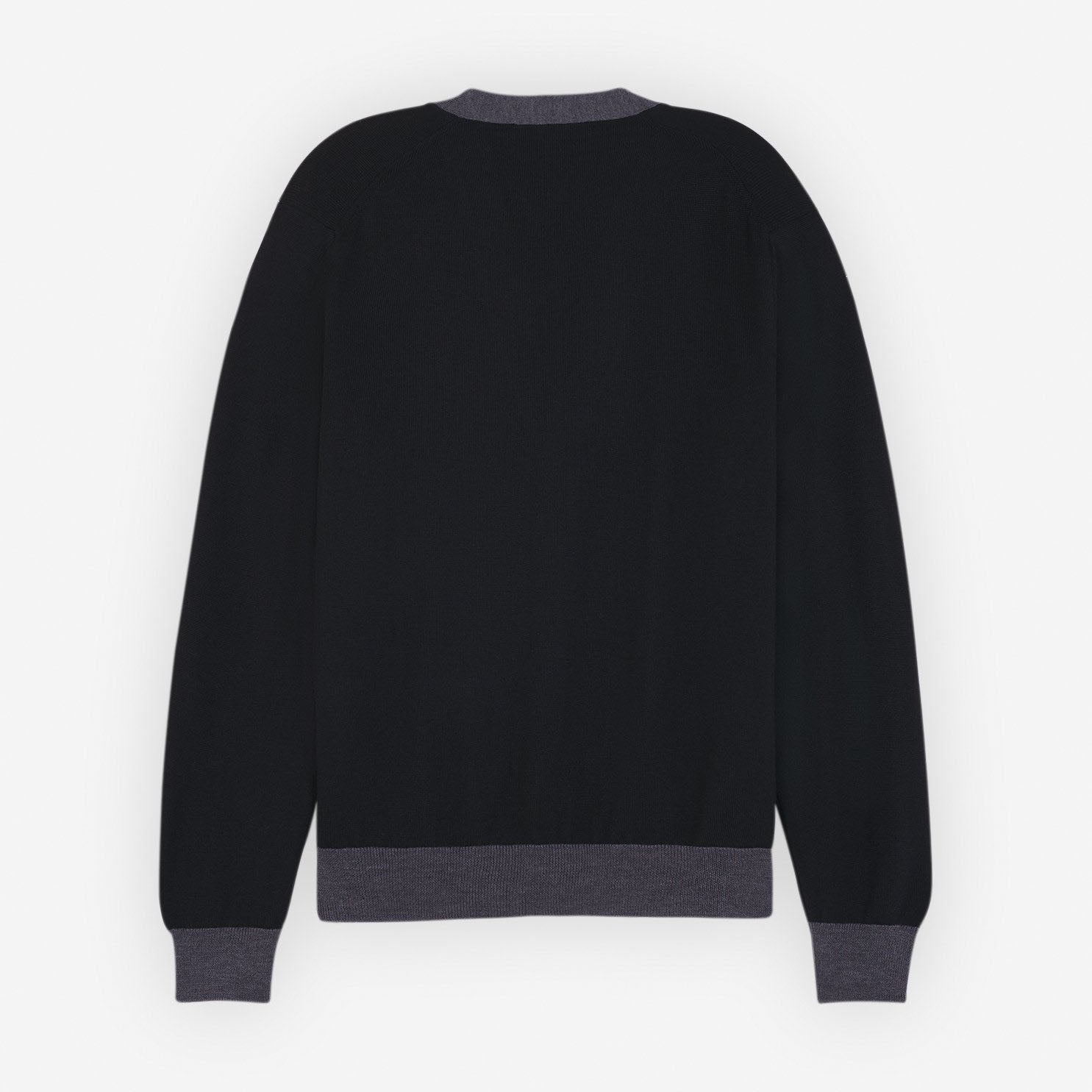 - Type & Color: V-neck button-up cardigan with contrast trim, available in Navy/Blue and Black/Grey