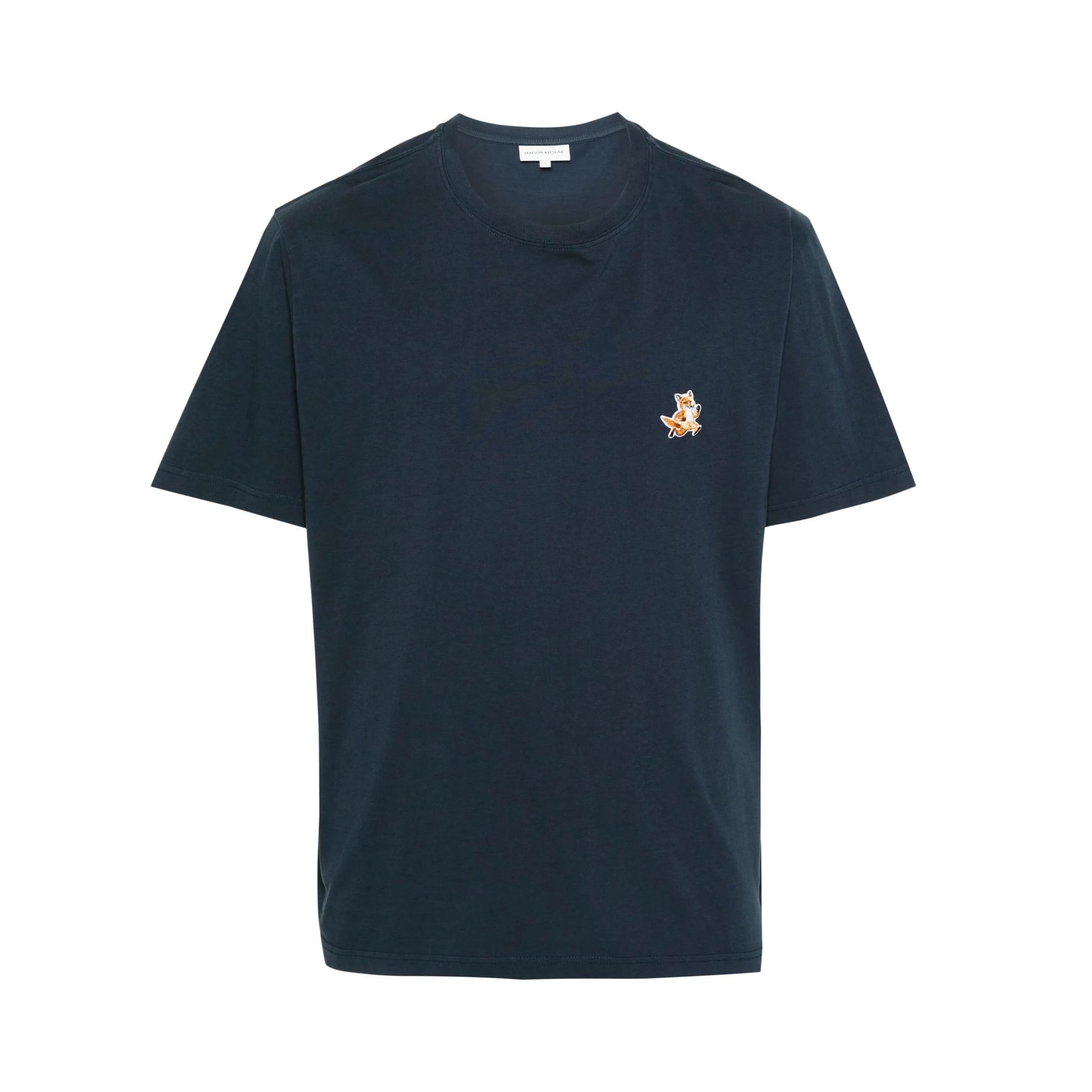- Classic crewneck T-shirt with Maison Kitsuné’s signature small fox head patch embroidered on the chest.