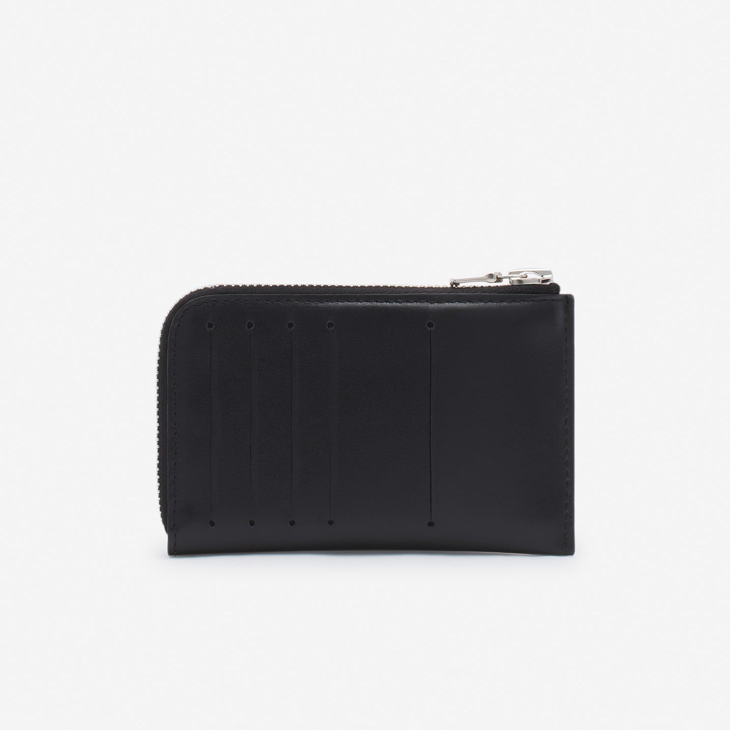 - Type & Color: Sleek zip card wallet in black