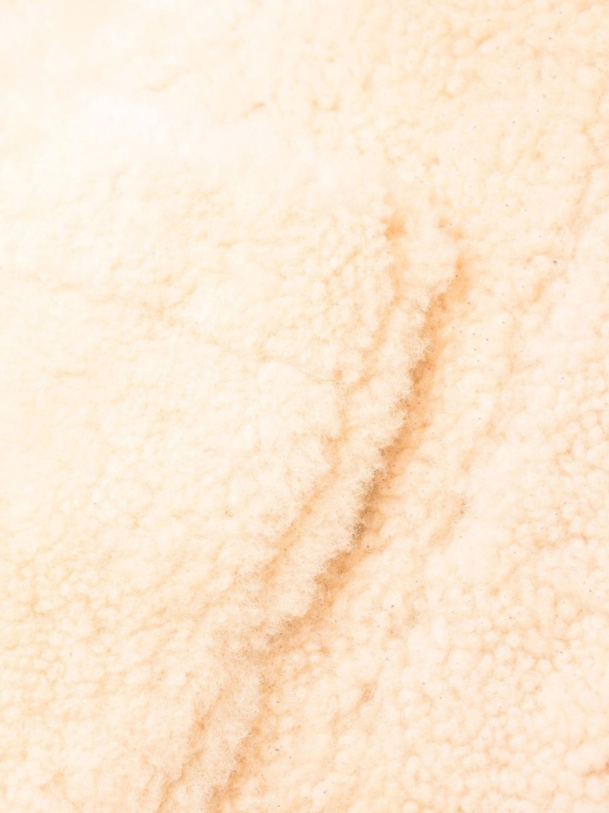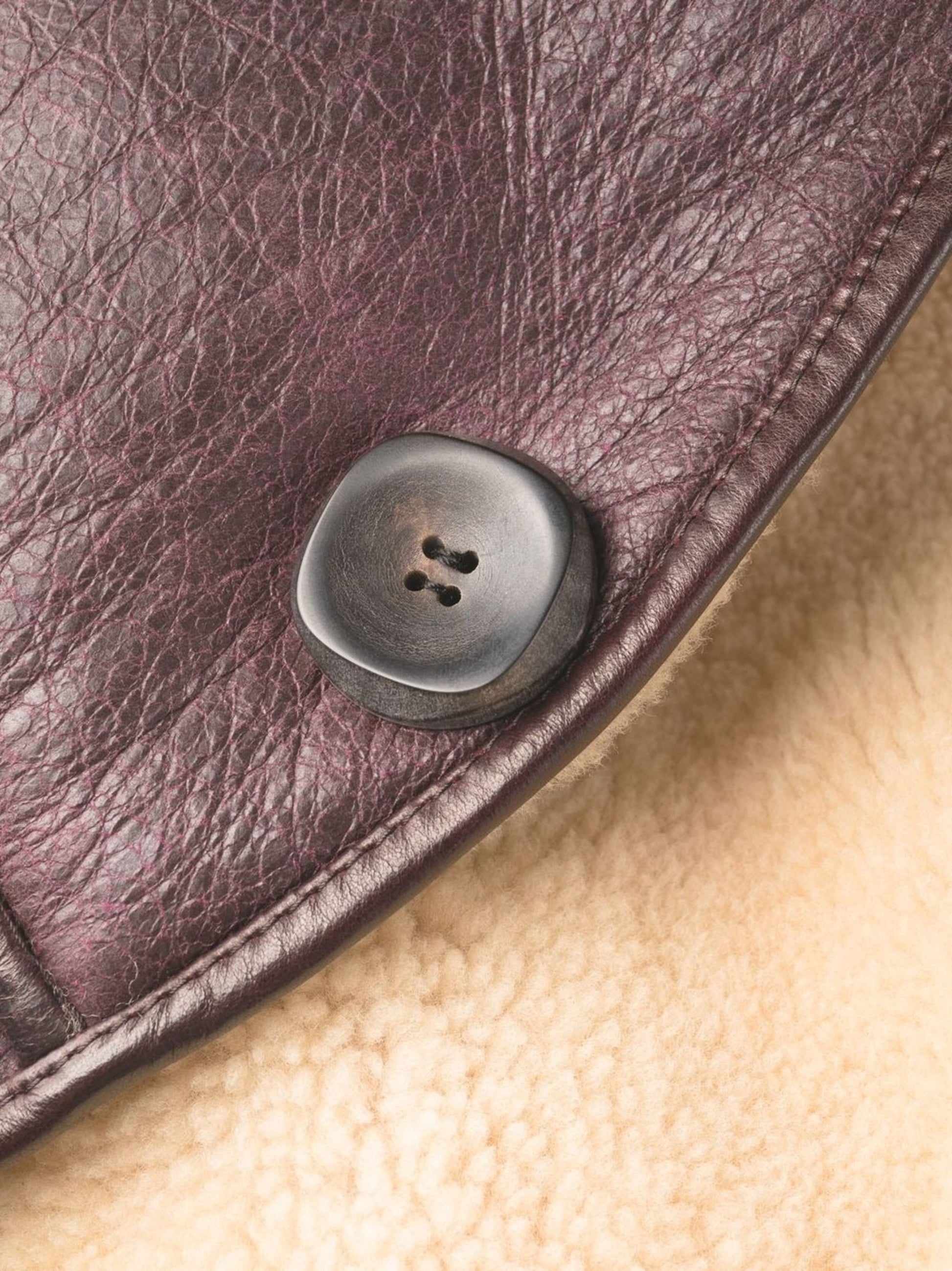 - Type & Color: Reversible long vest in beige lamb fur and burgundy leather