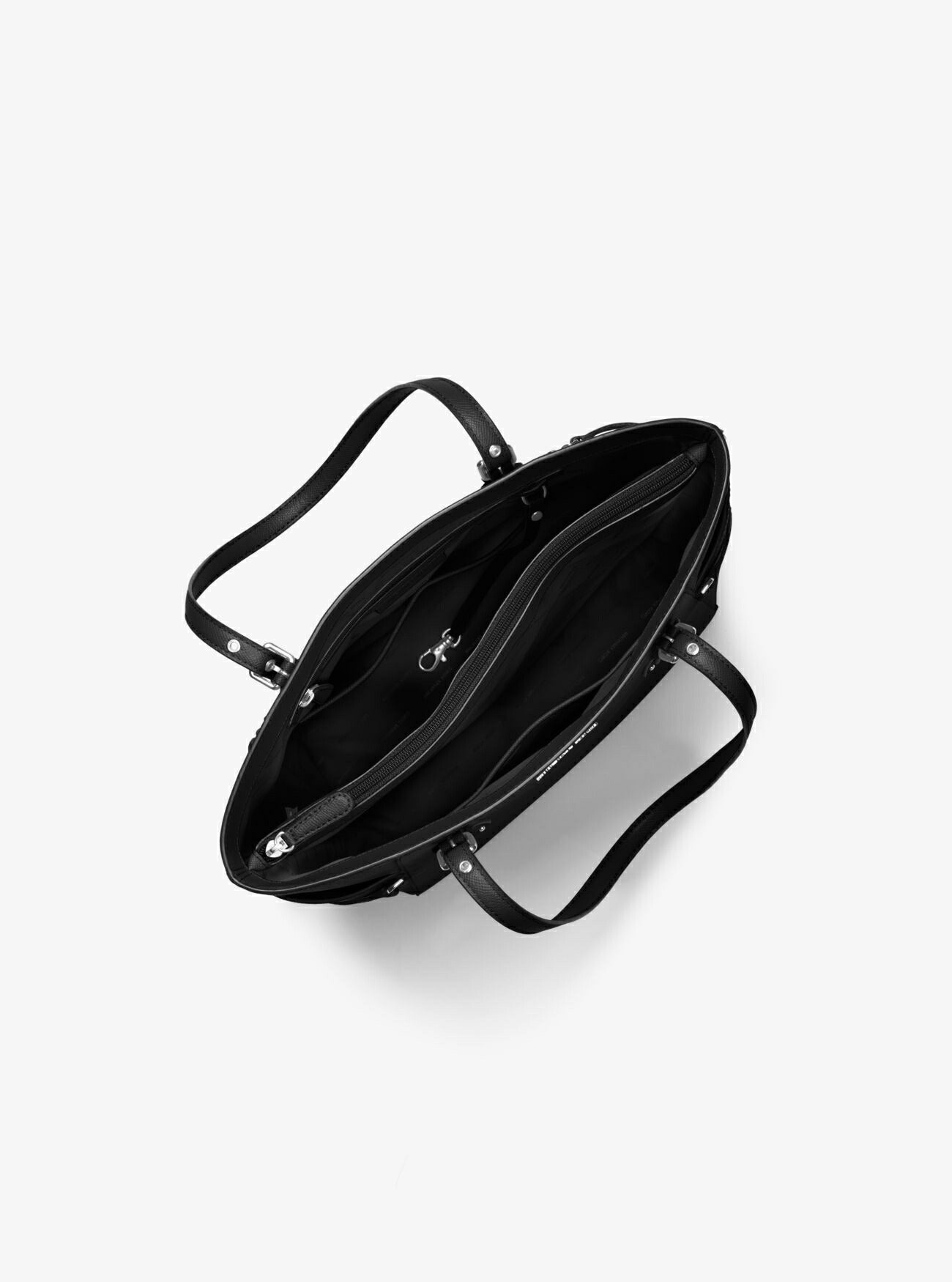 Saffiano leather exterior with textile lining and polished hardware