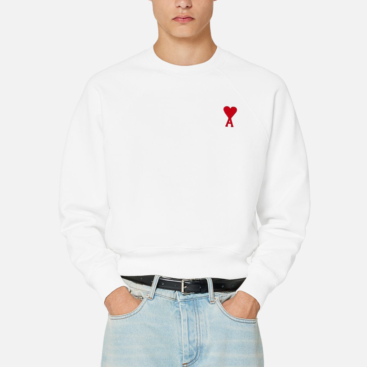- Design Features: Classic crew neck, ribbed cuffs and hem, iconic red AMI heart logo embroidered on the chest